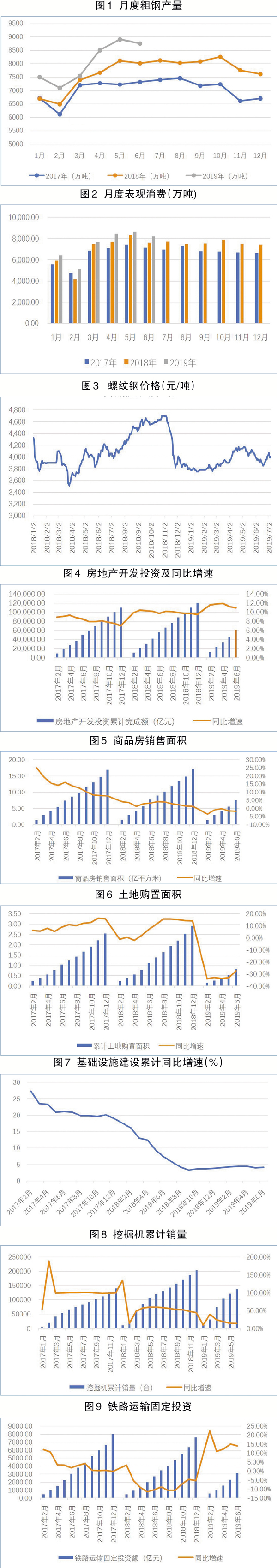 綜上,銷售萎靡、土地購置熱度下降、房fang企qi融rong資zi受shou限xian,下xia半ban年nian房fang地di產chan投tou資zi增zeng速su或huo將jiang進jin一yi步bu下xia滑hua,尤you其qi是shi在zai融rong資zi受shou限xian的de背bei景jing下xia,已yi開kai工gong項xiang目mu的de施shi工gong投tou資zi可ke能neng受shou到dao影ying響xiang。但dan由you於yu上shang半ban年nian房fang地di產chan開kai發fa投tou資zi增zeng速su與yu2018年同期相比尚可,在較大的基數背景下,房地產投資中的施工投資與去年同期相比變化不大,預計2019年對鋼材的需求與去年基本持平。