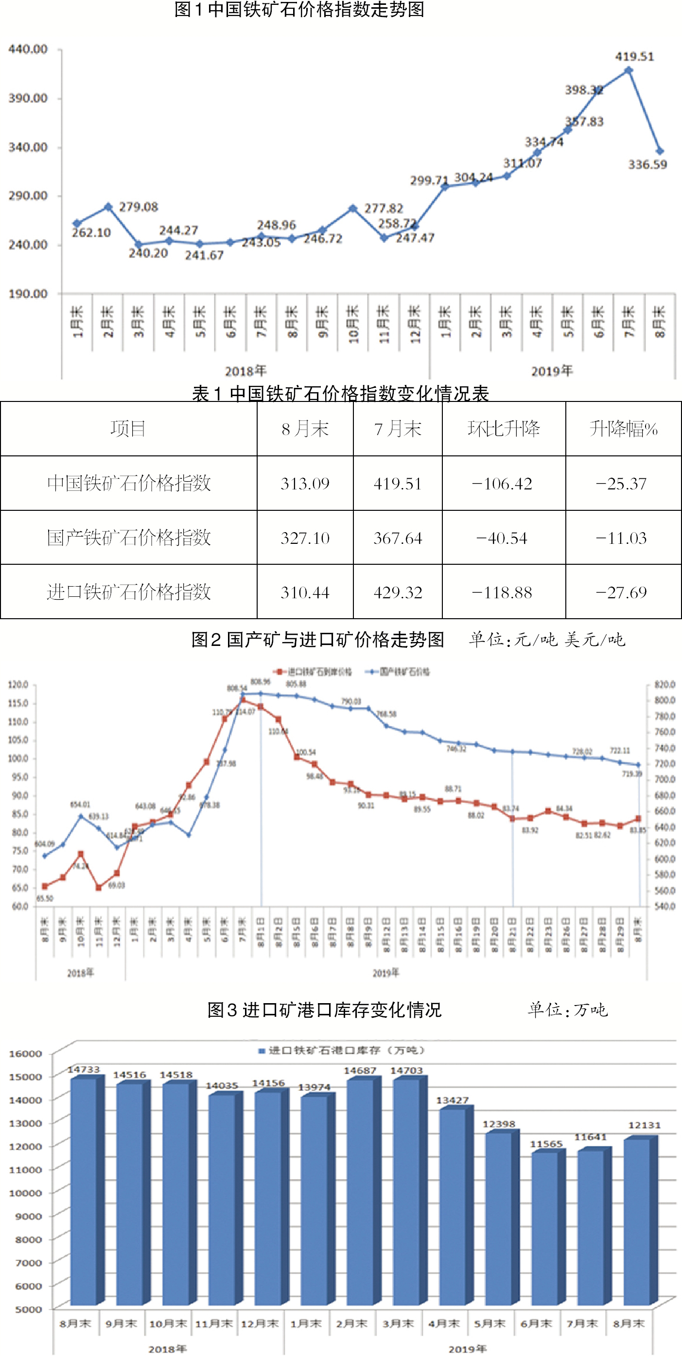 8月份,鋼鐵生產總體保持平穩,受鐵礦石供應量大幅增加的影響,鐵礦石價格明顯回落。後期,隨著國慶70周年慶祝活動的臨近,新一輪環保限產和化解過剩產能督導檢查等工作將相繼開展,鋼鐵產量將有所減少,鐵礦石價格仍有下行空間。