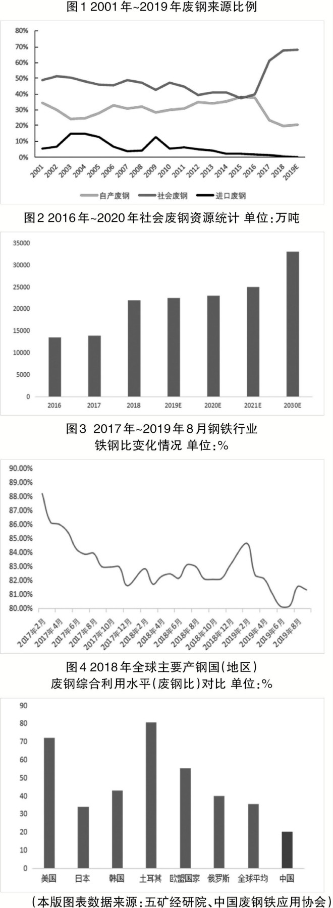 由於自產廢鋼和加工廢鋼規模相對穩定,未來廢鋼增量主要來自社會廢鋼。2019年,近70%的廢鋼資源來自社會回收渠道。