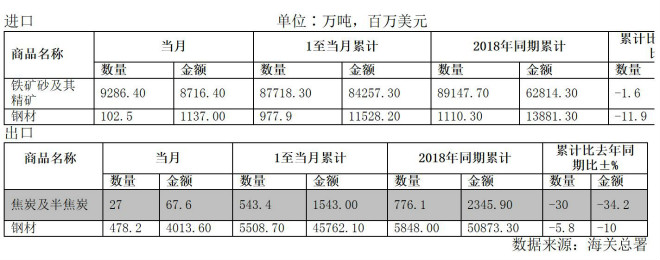 10月我國出口鋼材478.2萬噸,同比下降13.1%