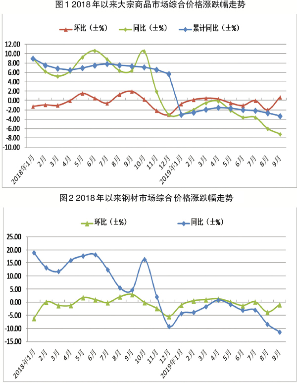 9月份,隨著高溫多雨季節結束,大宗商品市場迎來傳統旺季,加之受宏觀政策逆周期調節力度加大、基礎設施建設加快推進等因素影響,大宗商品市場需求有所回暖。與此同時,在各地環保限產政策趨嚴、生產企業利潤收窄的作用下,市場供應增速繼續下滑。綜合來看,9月份,大宗商品市場供需關係改善,整體運行向好,商品庫存下降,市場價格止跌回升。