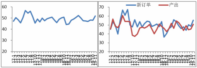 2019年11月份河北省鋼鐵行業PMI為51.9%,環比上升4.0%。11月份國內鋼材市場淡季不冷,價格不降反增,行業積極情緒升溫帶動PMI重回榮枯線上。