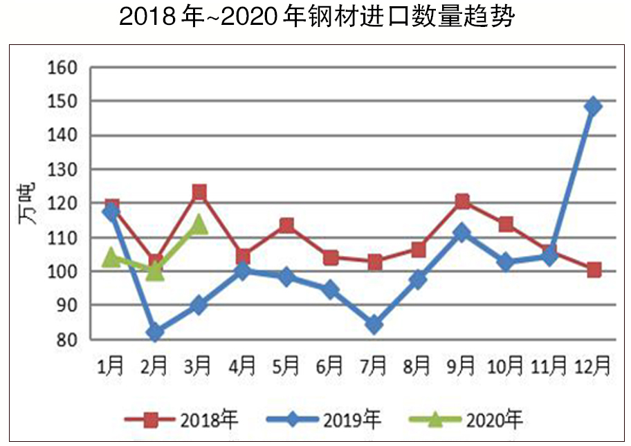 進口熱軋卷板數量成倍增長。1月~3月份,我國進口棒線材34.7萬噸,同比增長45%;進口均價為1238.1美元/噸,同比下降24.7%。 我國進口普通熱軋薄板(卷)38.8萬噸,同比增長154.3%;進口均價為515.1美元/噸,同比下降22.4%。我國進口普通冷軋薄板(卷)46.1萬噸,同比增長9.5%;進口均價為616.3美元/噸,同比下降12.2%。雖然已實施貿易救濟措施,但我國取向電工鋼進口量增長仍較快,1月~3月份累計進口11.4萬噸,同比增長38.7%。