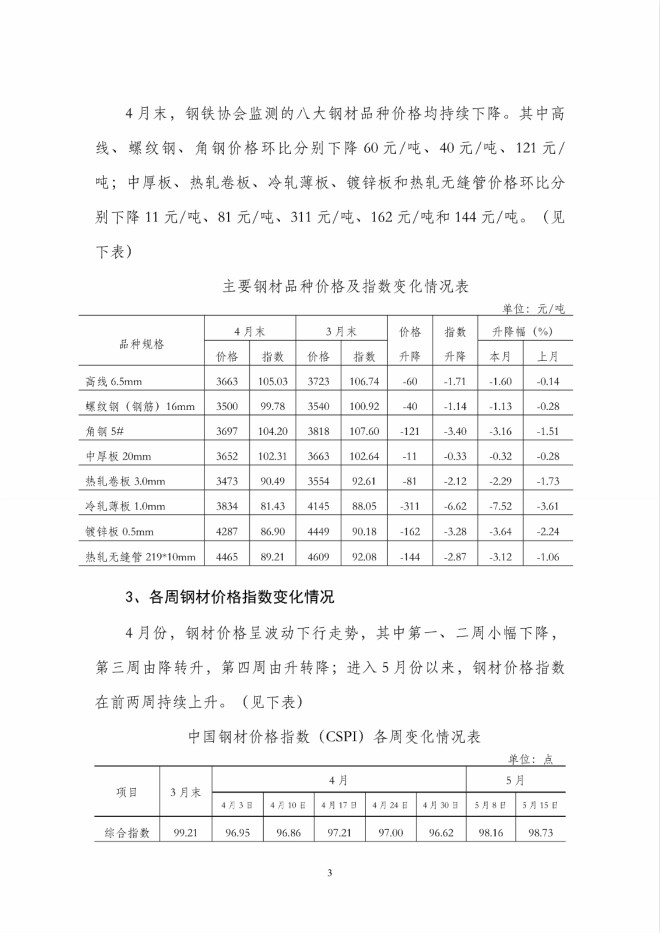 4月份國內市場鋼材價格繼續下降,後期將呈小幅回升走勢