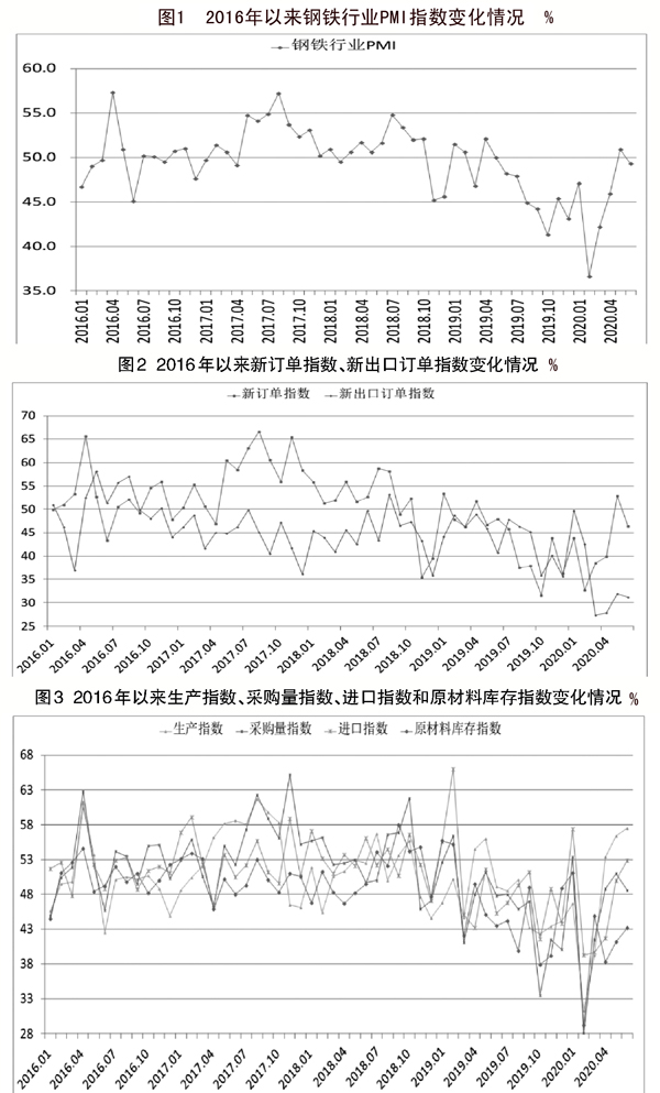 從鋼鐵PMI及各分項指數走勢來看,上半年鋼鐵行業整體運行態勢偏緊。上半年鋼鐵PMI均值為45.3%,較去年同期下降5.5個ge百bai分fen點dian。年nian初chu受shou春chun節jie停ting工gong和he新xin冠guan肺fei炎yan疫yi情qing影ying響xiang,市shi場chang需xu求qiu有you所suo下xia降jiang。第di二er季ji度du,隨sui著zhe國guo內nei疫yi情qing影ying響xiang逐zhu漸jian減jian弱ruo,新xin訂ding單dan指zhi數shu有you所suo回hui升sheng,總zong體ti來lai看kan,上shang半ban年nian新xin訂ding單dan指zhi數shu為wei42.4%,較去年同期下降10.8個百分點,市場需求整體偏緊。上半年新出口訂單指數均值為35.1%,較去年同期下降10.6個百分點,出口情況較不樂觀。