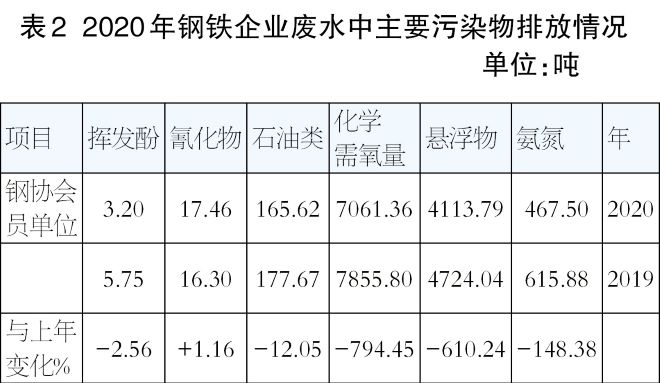 2020年鋼協會員企業廢水中主要汙染物排放量均得到下降;企業類型不同、產品結構的不同,出現各企業之間廢水中主要汙染物排放水平差異較大,詳見表2。