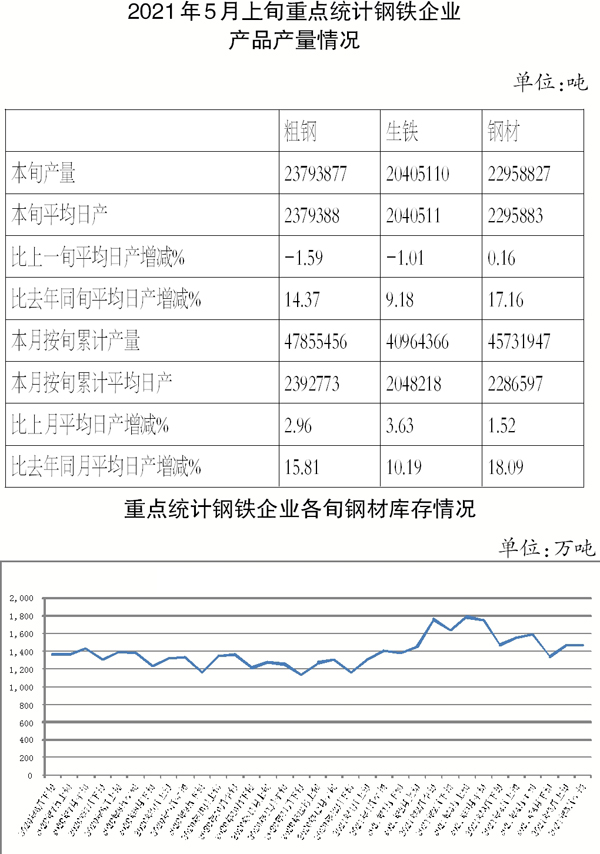 ——5月中旬鋼鐵企業生產與庫存情況
