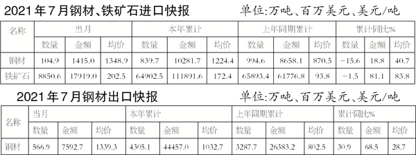 7月份我國出口鋼材環比減少