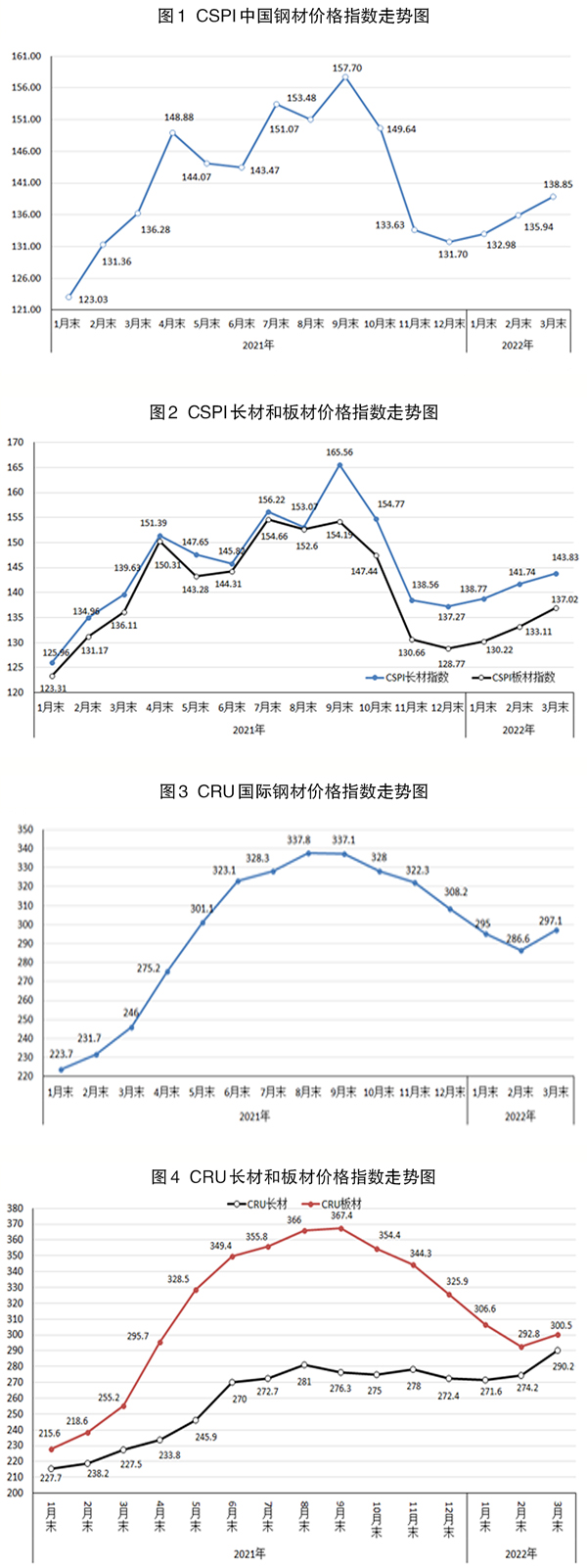 3月份,國內市場鋼材需求啟動緩慢,鋼鐵產量處於低位,受原燃材料價格高位上漲影響,鋼材價格小幅上升。進入4月以來,物流受阻影響加大,鋼材價格小幅調整。