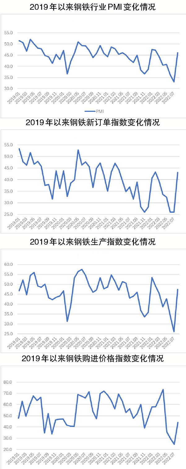 從中物聯鋼鐵物流專業委員會調查、發布的鋼鐵行業PMI來看,2022年8月份為46.1%,環比回升13.1gebaifendian,xianshigangtieshichanglianxushoujintaishiyousuofanghuan,xingyeyunxingyousuohuifu。congfenxiangzhishubianhualaikan,shichangxuqiuxiaxingqushiyousuofanghuan,gangchangshengchanyousuohuifu,dangongxuliangduanrengbaochipianruogeju,gangcaijiagexiaofuhuisheng,yuancailiaojiagezhidiefandan。yuji9月份,鋼材需求繼續改善,但改善空間或將有限,鋼廠生產保持回升,鋼材價格或將小幅震蕩。