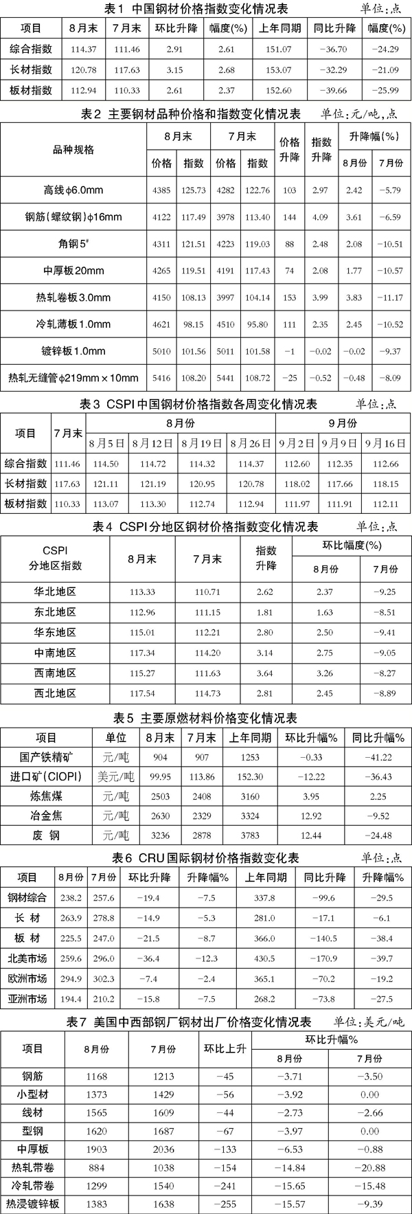 8月份,國內市場鋼材需求形勢有所好轉,鋼鐵產量環比增長,鋼材價格止跌回升。進入9月份以來,鋼材價格呈小幅波動走勢。