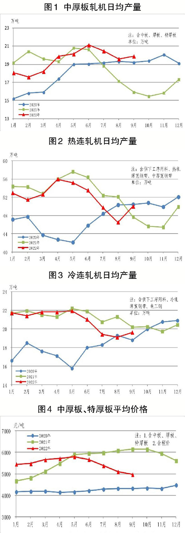 9月份,中厚板軋機生產特厚板、中厚板597萬噸,同比增加120萬噸,上升25.3%。1月—9月份,特厚板、中厚板累計生產5293萬噸,同比增加88萬噸,上升1.7%。