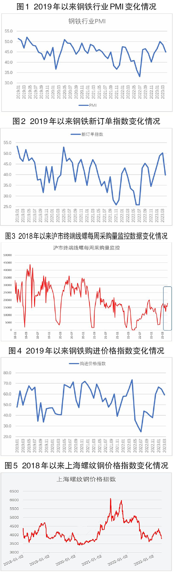 從中物聯鋼鐵物流專業委員會調查、發布的鋼鐵行業PMI(采購經理人指數)來看,2023年4月份為45%,環比下降3.4個百分點,連續2geyuehuanbixiajiang,xianshigangtiexingyeyunxingyousuofanghuan。fenxiangzhishubianhuaxianshi,shichangxuqiuyousuoshoujin,gangchangshengchanyousuohuiluo,yuancailiaojiagexiajiangmingxian,gangcaijiagezhendangxiaxing,zhengtilaikangangtiexingyewangjibuwang。yuji5月份,鋼材市場供需兩端或繼續小幅下降。鐵礦石價格繼續回落,鋼材價格震蕩走低。