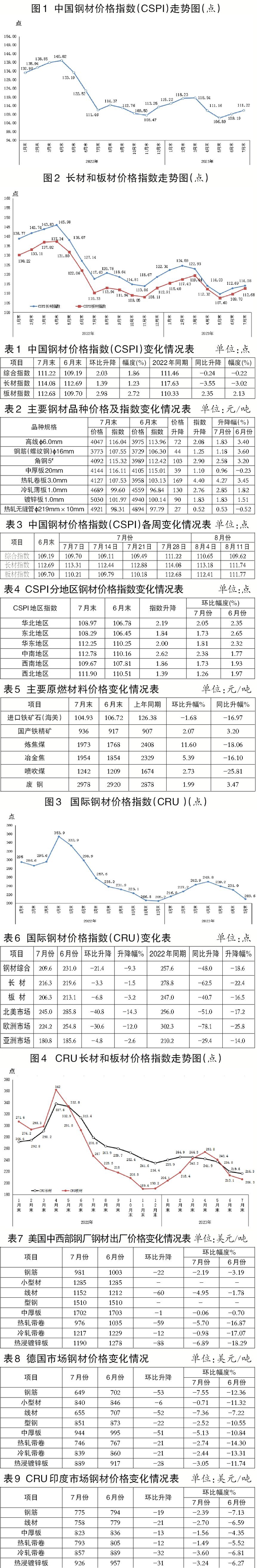 7月份,CSPI國內鋼材綜合指數呈波動上行走勢。進入8月份以來,鋼價連續兩周小幅回落。