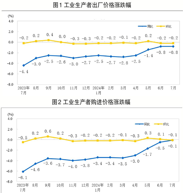 本報訊 國家統計局消息,7月份,全國工業生產者出廠價格同比下降0.8%,環比下降0.2%,降幅與6月份相同;工業生產者購進價格同比、環比均下降0.1%。其中,黑色金屬材料類購進價格同比下降2.6%,環比下降0.6%。(郭同炬)
