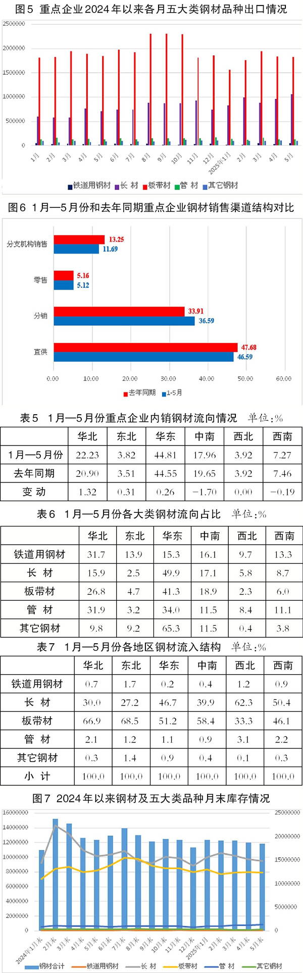 1月—5月份重點統計鋼鐵企業鋼材產品營銷統計分析顯示: