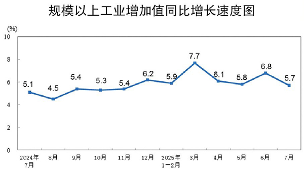 本報訊 7月份,規模以上工業增加值同比實際增長5.7%(增加值增速均為扣除價格因素的實際增長率),環比增長0.38%。1月—7月份,規模以上工業增加值同比增長6.3%。