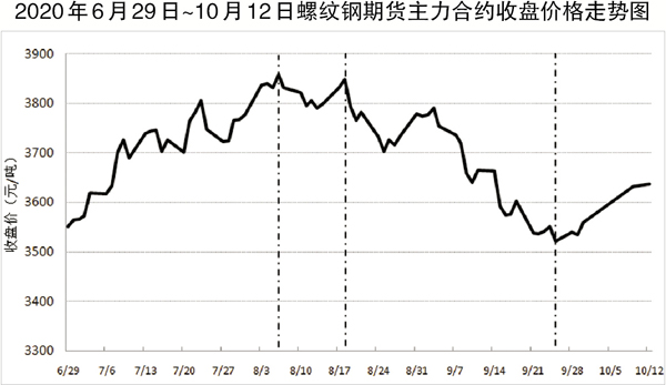 從螺紋鋼期貨主力合約價格走勢圖可以看出,螺紋鋼收盤價自9月26日開始出現回升跡象,而其最高價和最低價則從9月30日開始出現反彈。