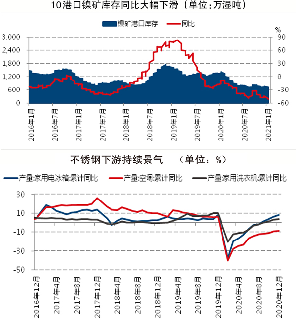 不bu鏽xiu鋼gang減jian產chan後hou基ji本ben麵mian明ming顯xian改gai善shan。隨sui著zhe去qu年nian末mo不bu鏽xiu鋼gang企qi業ye的de大da幅fu減jian產chan,以yi及ji海hai外wai新xin冠guan肺fei炎yan疫yi情qing二er次ci暴bao發fa引yin起qi的de外wai需xu內nei轉zhuan,不bu鏽xiu鋼gang自zi身shen基ji本ben麵mian有you了le較jiao大da改gai善shan,進jin入ru1月份以來,華南地區現貨呈現出持續短缺的狀態。在廣東省佛山市、江蘇省無錫市兩地持續去庫存的態勢下,華南地區各係冷、熱軋鋼材價格持續調漲,部分商家認為當前終端節前備貨氛圍增濃,預計貨源偏少的狀態將持續至3月以後。