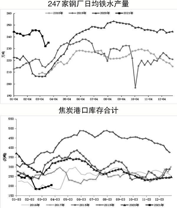 具體來看,近期因河北省唐山市鋼廠環保限產政策趨嚴的影響,焦炭高爐需求受到較大衝擊,日均鐵水產量兩周累計降幅達13萬噸,並且需求急速走弱促使焦價超預期繼續下跌2輪。不過,其他地區環保限產政策相對寬鬆,尚未出現類似河北省唐山市鋼廠限產的情況,疊加近期鋼材價格保持強勢、原(yuan)材(cai)料(liao)讓(rang)利(li),鋼(gang)廠(chang)利(li)潤(run)恢(hui)複(fu)較(jiao)好(hao)。另(ling)外(wai),終(zhong)端(duan)需(xu)求(qiu)穩(wen)步(bu)恢(hui)複(fu),鋼(gang)材(cai)庫(ku)存(cun)出(chu)現(xian)向(xiang)下(xia)拐(guai)頭(tou)趨(qu)勢(shi),多(duo)種(zhong)因(yin)素(su)刺(ci)激(ji)鋼(gang)廠(chang)保(bao)持(chi)良(liang)好(hao)的(de)生(sheng)產(chan)情(qing)緒(xu),短(duan)期(qi)焦(jiao)炭(tan)需(xu)求(qiu)出(chu)現(xian)一(yi)定(ding)程(cheng)度(du)回(hui)升(sheng)。上(shang)周(zhou)調(tiao)研(yan)數(shu)據(ju)顯(xian)示(shi),全(quan)國(guo)247家鋼廠高爐煉鐵產能利用率為88.30%,環比增長1.14%,同比增長5.53%;日均鐵水產量為235.05萬噸,環比增加3.05萬噸,同比增加14.71萬噸。