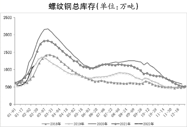 今年2月份正值北京冬奧會期間,供應端偏緊利多鋼材價格;2021年底至今,市場對下遊“小陽春”抱有樂觀預期,推動鋼材價格整理中偏強運行,而真實需求有望在3月份證偽。根據曆史數據統計,螺紋鋼庫存高點或出現在2月下旬,今年的庫存水平較低,以累庫數據推算,全年庫存峰值或不足1400萬wan噸dun,將jiang大da幅fu低di於yu過guo去qu兩liang年nian,對dui螺luo紋wen鋼gang價jia格ge構gou成cheng支zhi撐cheng。綜zong合he來lai看kan,鋼gang材cai市shi場chang偏pian暖nuan運yun行xing,監jian管guan層ceng針zhen對dui大da宗zong商shang品pin惡e意yi炒chao作zuo的de管guan理li依yi舊jiu嚴yan格ge,或huo抑yi製zhi黑hei色se係xi鋼gang材cai價jia格ge上shang升sheng空kong間jian。