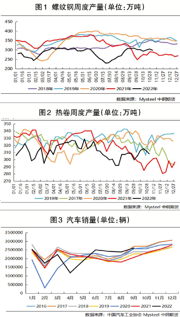 對比來看,熱卷周度產量自8月中旬的最低值292萬噸增加至10月下旬的315.49萬噸,產量增加23.49萬噸,增幅為8.04%,但較減產前的6月上旬產量高點328.84萬噸仍然下降13.35萬噸。此外,複產過程也並不順利,熱卷產量在9月下旬出現過明顯的回落;上周熱卷周度產量為308.22萬噸,較複產後的最高點連續兩周回落,產量回落7.27萬噸,降幅為2.3%,較減產前的產量高點回落6.3%(見圖2)。因(yin)而(er),無(wu)論(lun)從(cong)產(chan)量(liang)增(zeng)幅(fu)還(hai)是(shi)從(cong)複(fu)產(chan)過(guo)程(cheng)來(lai)看(kan),熱(re)卷(juan)減(jian)產(chan)後(hou)的(de)複(fu)產(chan)整(zheng)體(ti)表(biao)現(xian)不(bu)佳(jia),明(ming)顯(xian)差(cha)於(yu)螺(luo)紋(wen)鋼(gang)的(de)複(fu)產(chan)表(biao)現(xian)。熱(re)卷(juan)生(sheng)產(chan)企(qi)業(ye)複(fu)產(chan)之(zhi)路(lu)曲(qu)折(zhe)有(you)助(zhu)於(yu)卷(juan)螺(luo)差(cha)在(zai)短(duan)期(qi)內(nei)維(wei)持(chi)高(gao)位(wei)。