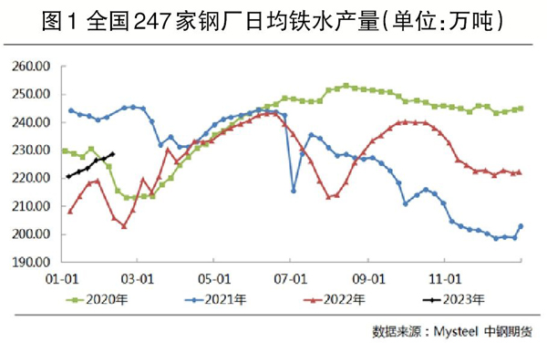xuqiufangmian,duanqishouzhongduanxuqiuleiruojigangchanglirunboruodeyingxiang,tieshuichanliangchixuxiaofuhuisheng,danzhengtirengchuyupiandiquyu,zhongduanxuqiufusulidujiangjuedingtiekuangshixuqiuhuishenglidu。duanqineiyouyuchunjiejiaqigangchangkucunxiaohaojiaoduoqiekucunshuipingxianzhudiyutongqi,houqicunzaiyidingbukuxuqiu。danzaigangchanglirunheshichangchengjiaoliangjunpiandigejuxia,bukukongjianjiaoxiao,diejiafeiganggongyingsudujiaokuai,yidingchengdushangyizhiletiekuangshixuqiu。zhongqilaikan,fangdichanxuqiurengtingliuzaiyuqicengmian,xiaoshouduanhuinuanxiangfangdichankaigongduanchuandaodezhouqijiaochang,xianshixuqiugaishankongjianjiaoxiao,tiekuangshizhongqixuqiunanyanleguan。jiezhi2月10日,全國247家鋼廠高爐開工率為78.42%,周環比增長1.01%,同比增長10.23%;高爐煉鐵產能利用率為84.93%,周環比增長0.60%,同比增長8.36%;鋼廠盈利麵為38.53%,環比擴大4.33%,同比減小43.72%;日均鐵水產量為228.66萬噸,環比增加1.62萬噸,同比增加22.62萬噸(見圖1)。