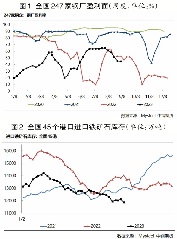 政策方麵,政策端預期反複,市場對粗鋼平控政策執行與否及執行力度均產生疑慮。一方麵,政策強調市場化機製調節。8月21日,工信部、國家發展改革委、財政部、自然資源部、生態環境部、商務部、海關總署等七部門聯合印發《鋼鐵行業穩增長工作方案》,文件內容指出要“形成需求牽引供給、供給創造需求的更高水平動態平衡”。近期房地產相關政策密集出台,增強市場對終端需求增量的預期,在需求偏強的預期下,供給端將實現“動態平衡”,粗(cu)鋼(gang)平(ping)控(kong)政(zheng)策(ce)落(luo)地(di)的(de)預(yu)期(qi)減(jian)弱(ruo)。另(ling)一(yi)方(fang)麵(mian),長(chang)流(liu)程(cheng)鋼(gang)廠(chang)在(zai)虧(kui)損(sun)狀(zhuang)態(tai)下(xia)依(yi)然(ran)維(wei)持(chi)高(gao)開(kai)工(gong)率(lv),在(zai)市(shi)場(chang)化(hua)機(ji)製(zhi)下(xia),鐵(tie)礦(kuang)石(shi)需(xu)求(qiu)難(nan)以(yi)快(kuai)速(su)下(xia)滑(hua)。據(ju)相(xiang)關(guan)機(ji)構(gou)調(tiao)研(yan)情(qing)況(kuang)來(lai)看(kan),8月初河北鋼廠螺紋鋼即期利潤轉為虧損,但日均鐵水產量不降反增。截至9月8日當周(9月4日—8日),日均鐵水產量(鋼聯口徑)創今年初以來的新高(248.24萬噸),較7月28日當周的240.69萬噸增加7.55萬噸(增幅為3.14%)。