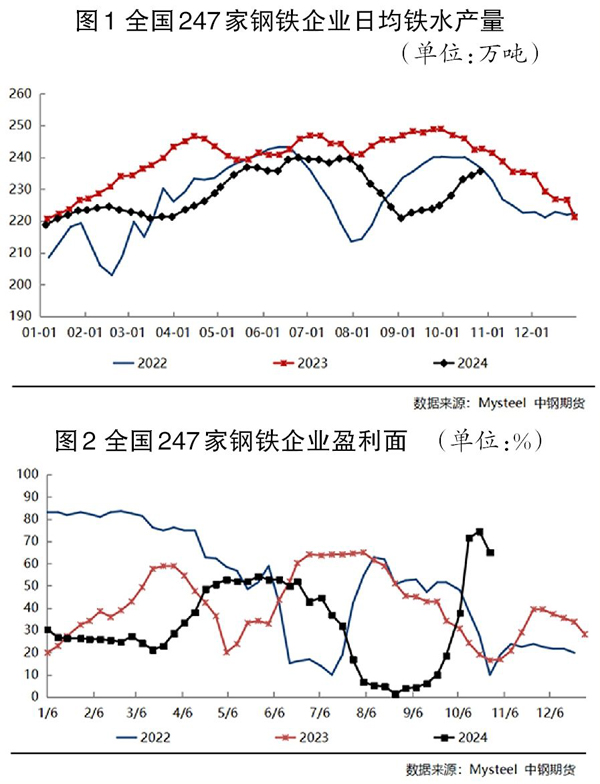 xuqiufangmian,hongguanyuqitizhenxiadexuqiumaichongshishangshengrengxuhouqicaizhengzhengcedeqiangcijizhichengpeihe。shangzhougangqiyinglilvhuiluoqiegangcaijiagehuiluofudujiaoda,gangqilirunyijingbeixianzhuyasuo,duanliuchengpingdianchengbenjiageyijingzhuanhuaweiqiangyali,jiguoneijieduanxinggaoxuqiuchixuxingcunyi。juxiangguanjigoutongji,quanguo247家鋼企高爐開工率為82.14%,周環上升0.46個百分點 ,同比下降0.35個百分點;高爐煉鐵產能利用率為88.48%,周環比上升0.49個百分點,同比下降2.25個百分點;鋼企盈利麵為64.94%,周環比下降9.52個百分點,同比上升48.49個百分點;日均鐵水產量為235.69萬噸,周環比增加1.33萬噸,同比減少7.04萬噸。
