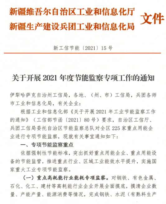 新疆開展2021年度節能監察專項工作