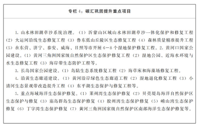 堅持係統觀念,推進山水林田湖草沙一體化保護和修複,提升生態係統的質量與穩定性,充分發揮森林、農田、濕地、海洋等固碳作用,提升生態係統碳彙增量。