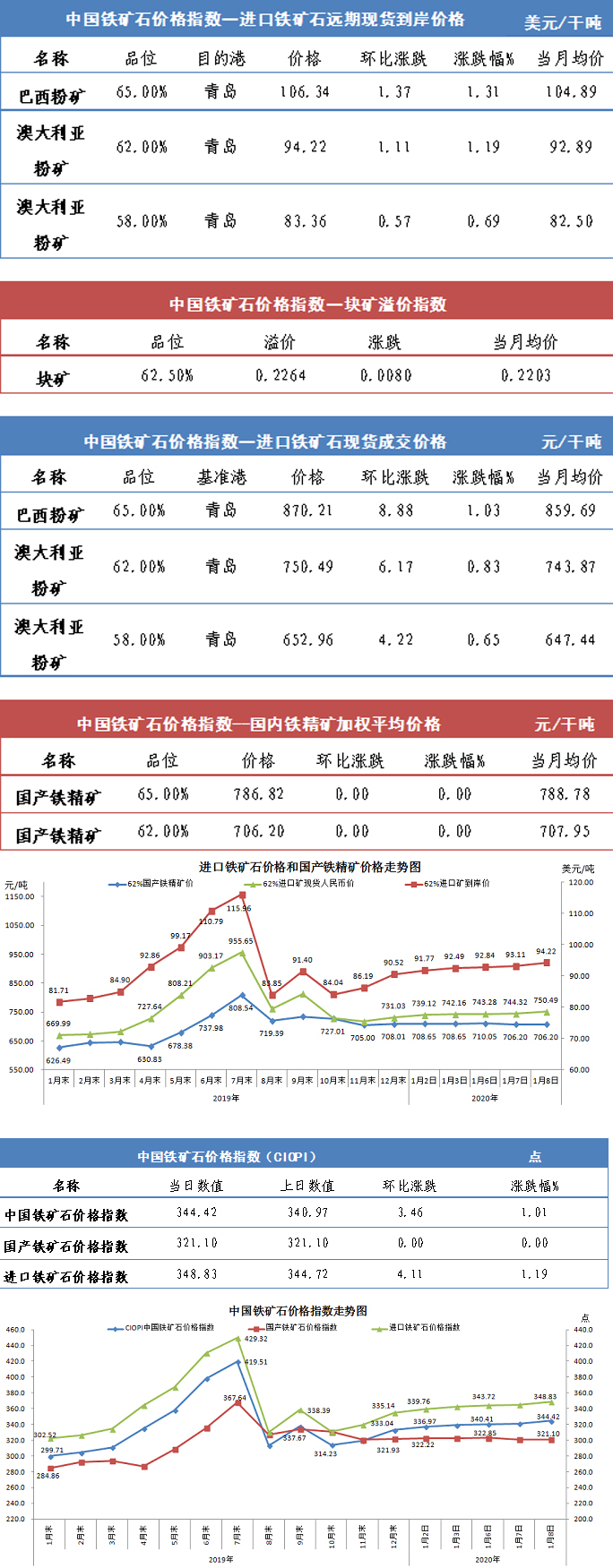 【行業指數】1月8日中國鐵礦石價格指數