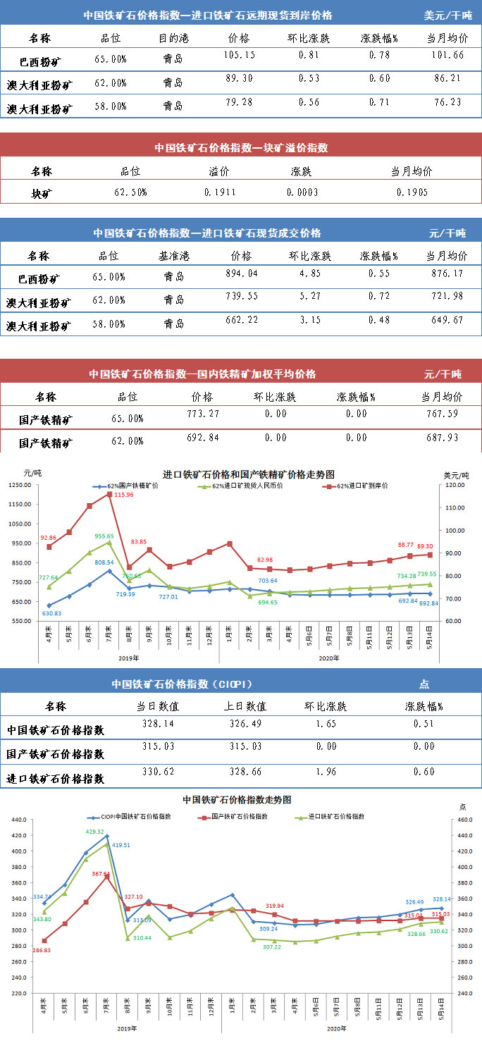 【行業指數】5月14日中國鐵礦石價格指數
