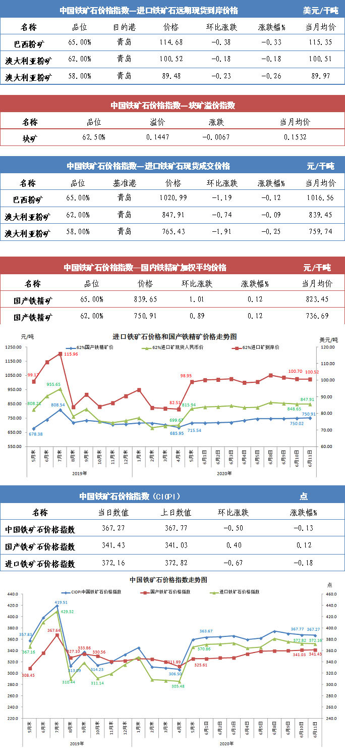 【行業指數】6月11日中國鐵礦石價格指數