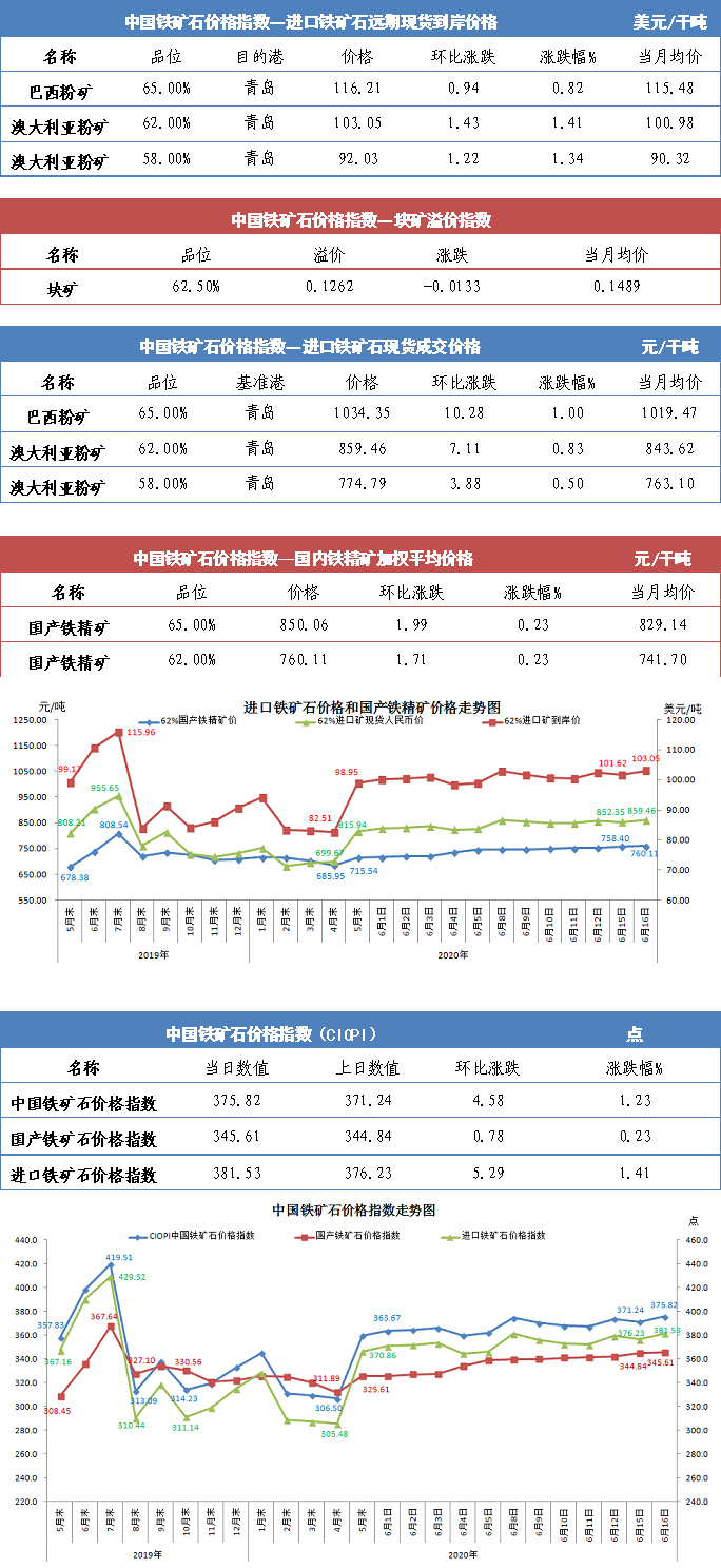 【行業指數】6月16日中國鐵礦石價格指數