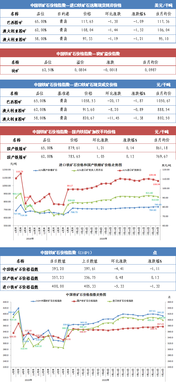 【行業指數】7月24日中國鐵礦石價格指數