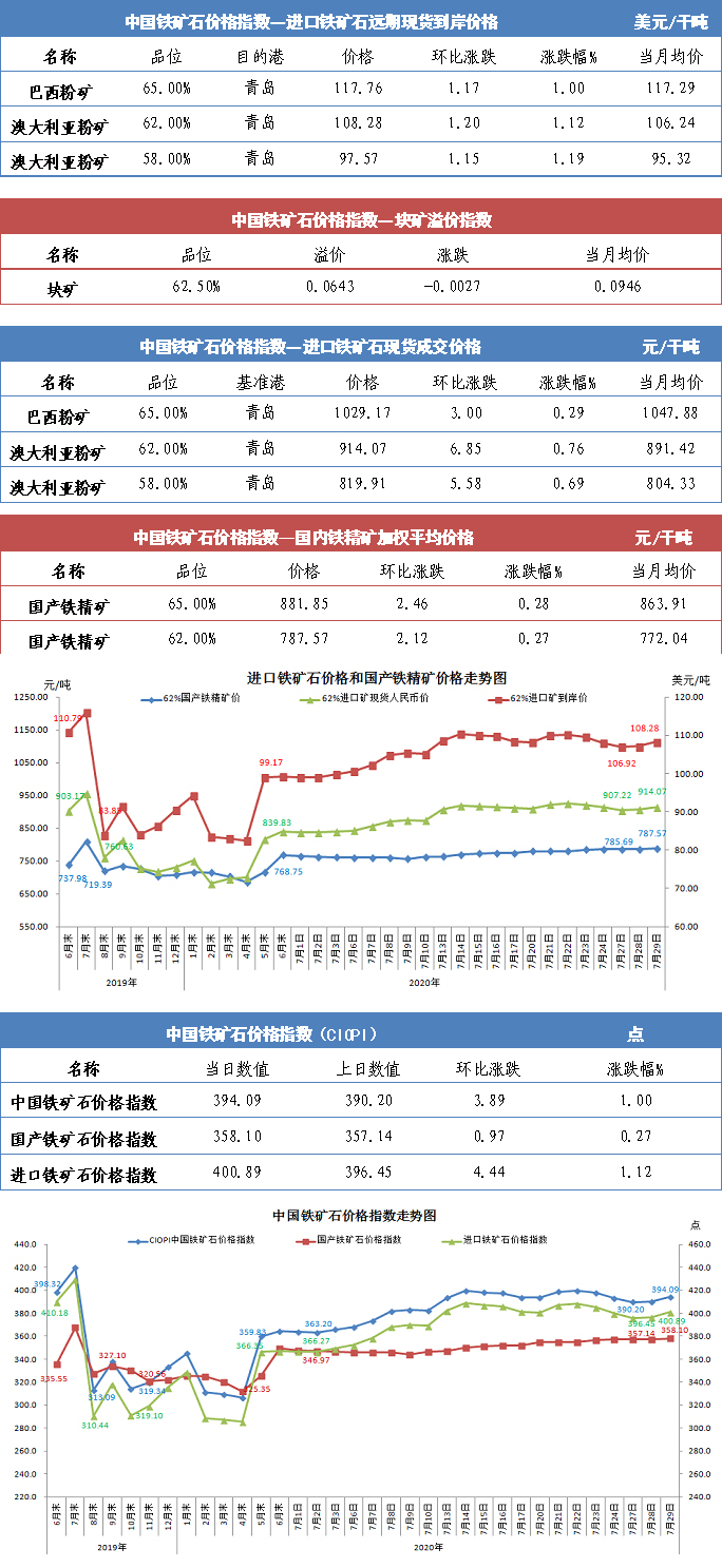 【行業指數】7月29日中國鐵礦石價格指數