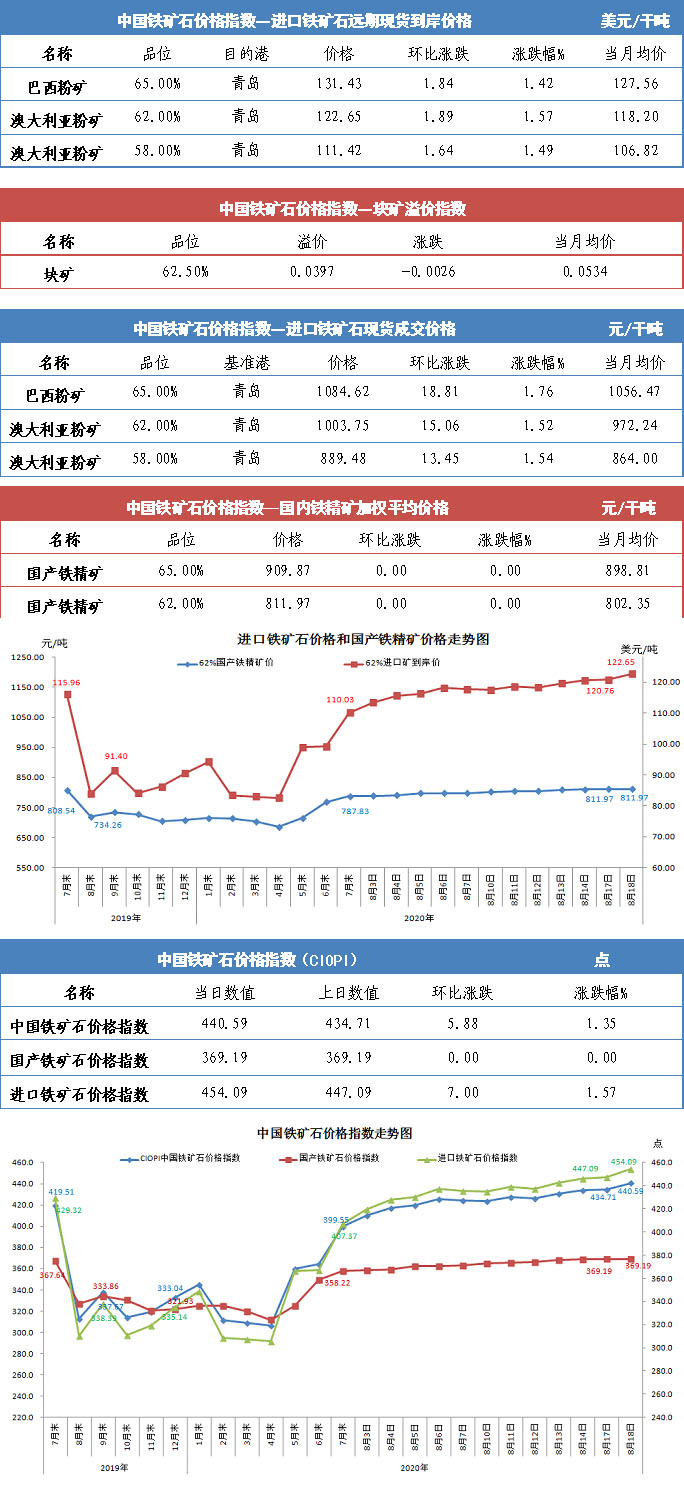 【行業指數】8月18日中國鐵礦石價格指數