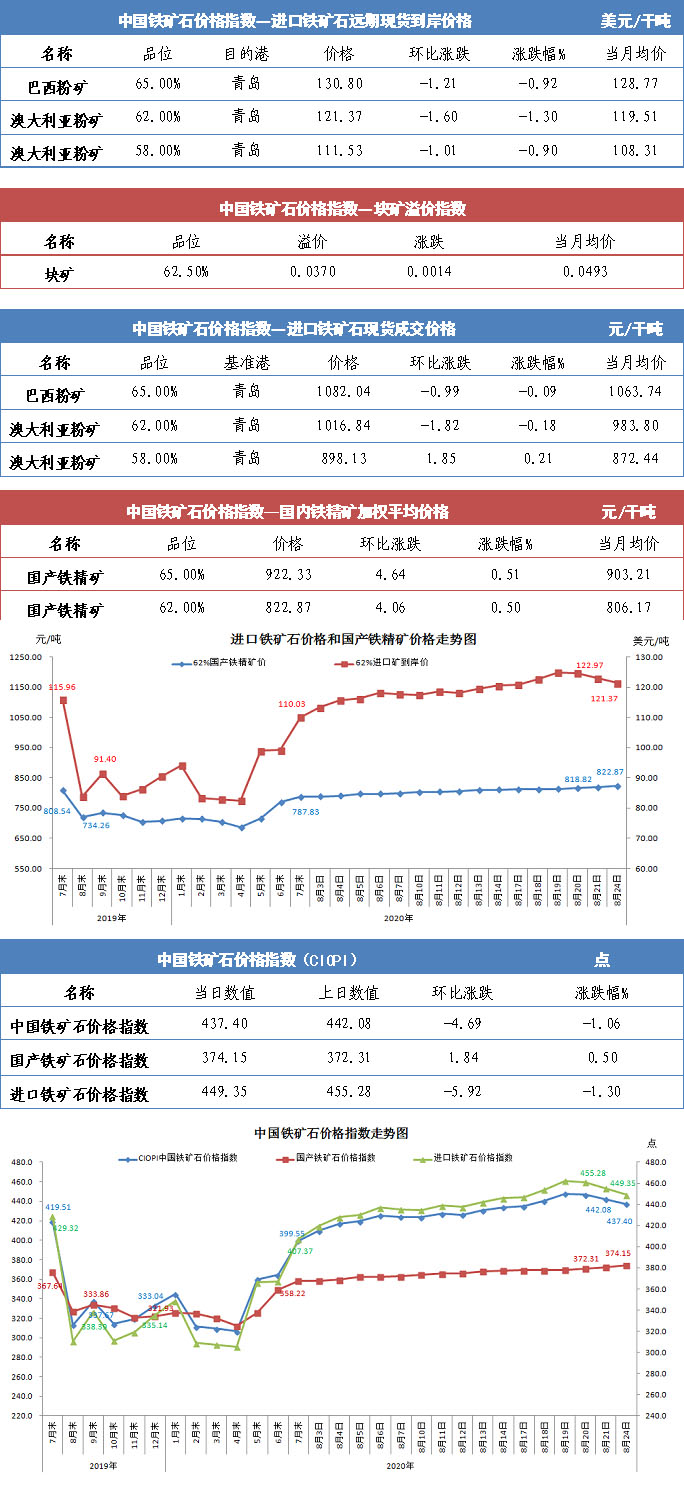 【行業指數】8月24日中國鐵礦石價格指數