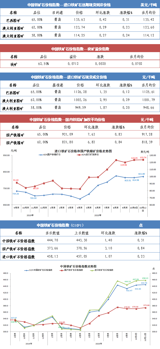 【行業指數】10月12日中國鐵礦石價格指數