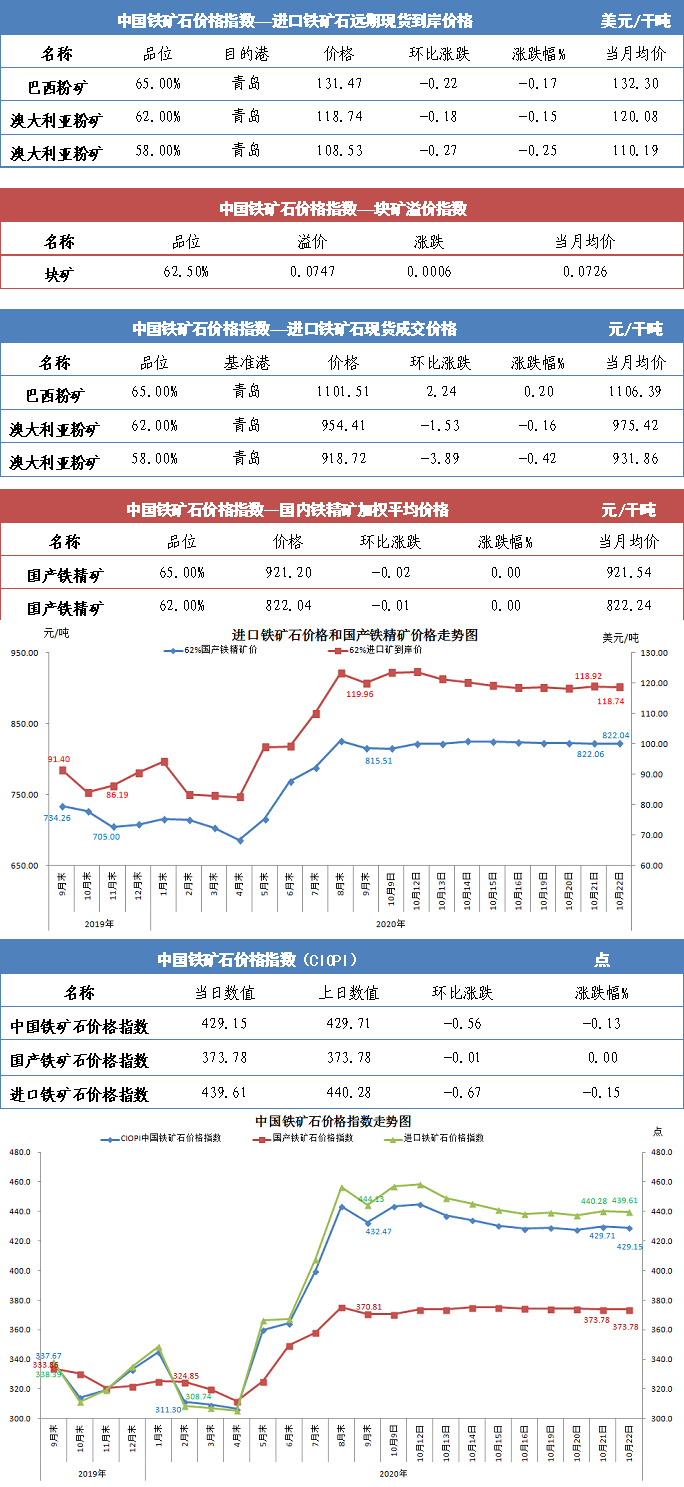【行業指數】10月22日中國鐵礦石價格指數