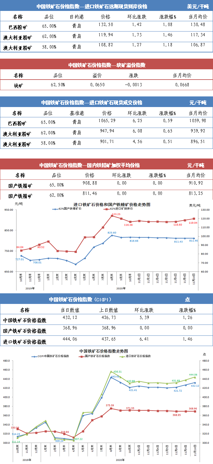 【行業指數】11月10日中國鐵礦石價格指數