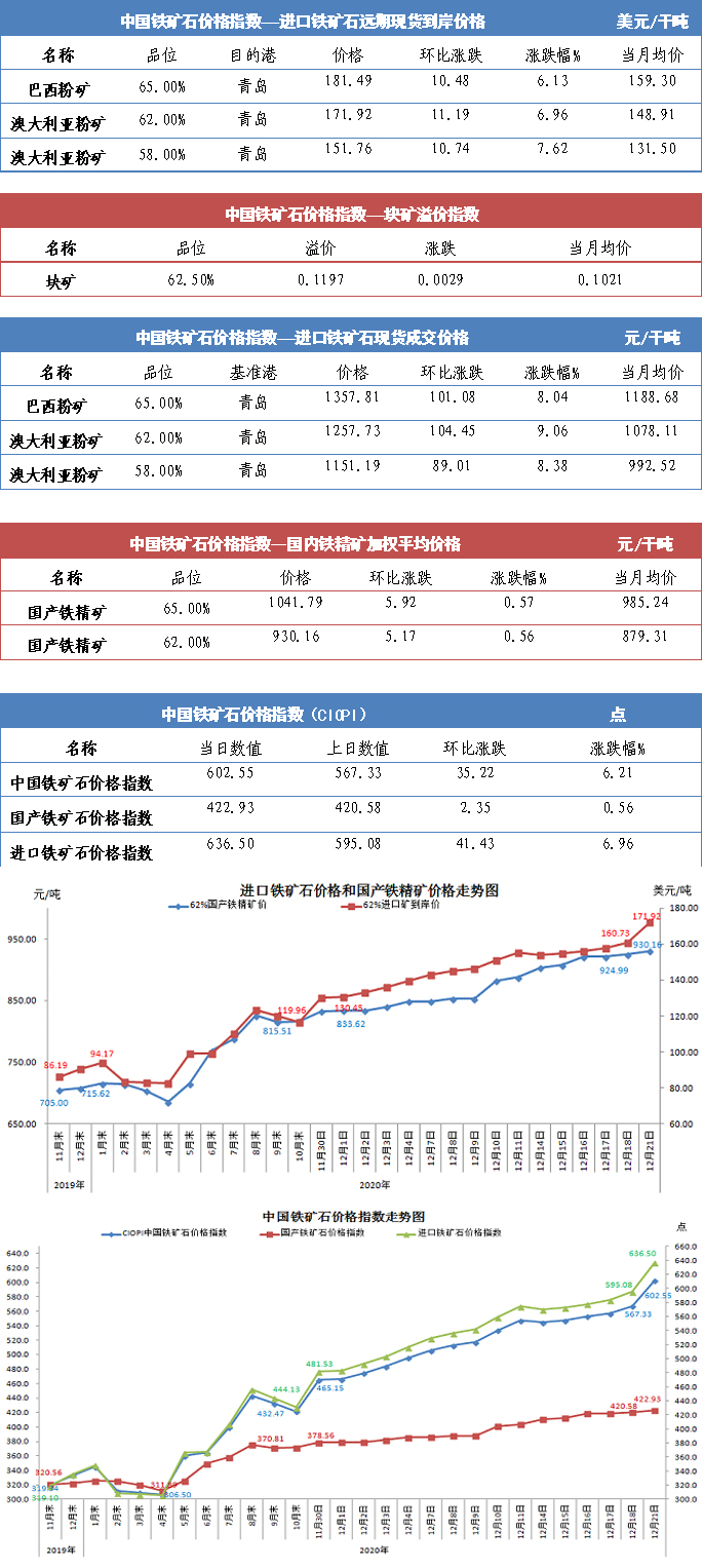 【行業指數】12月21日中國鐵礦石價格指數