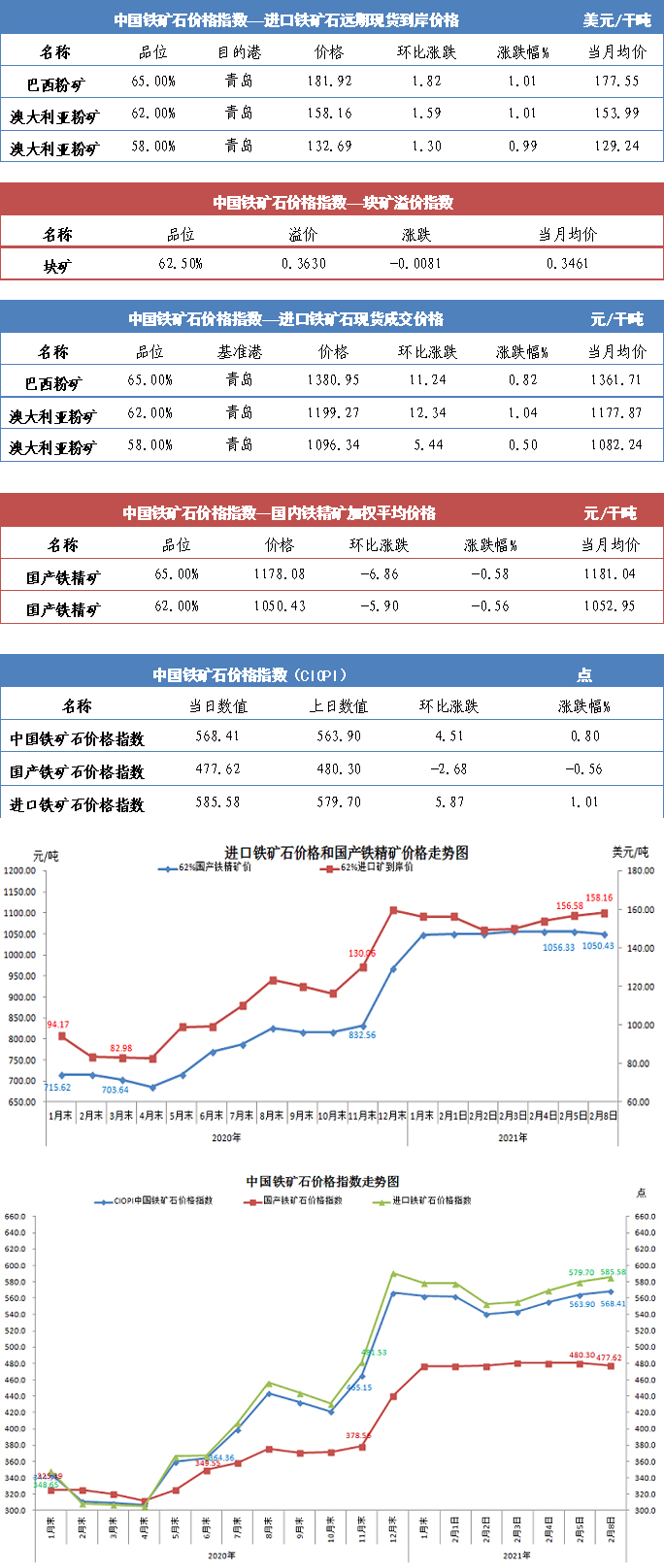 【行業指數】2月8日中國鐵礦石價格指數