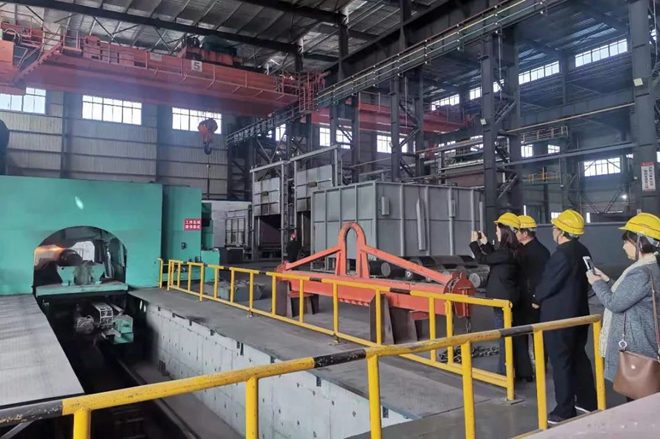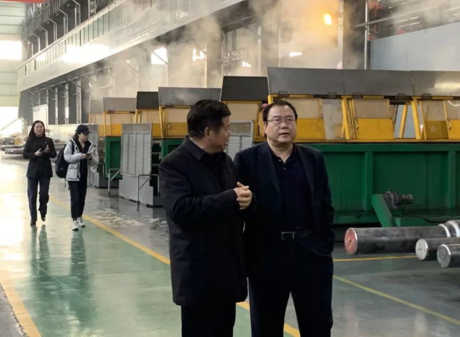 《鋼鐵脊梁》攝製項目組一行還參觀了共昌軋輥ESP(無頭連鑄連軋)精品軋輥生產線、高端微通道鋁扁管及電工鋁杆係列產品生產線等項目。