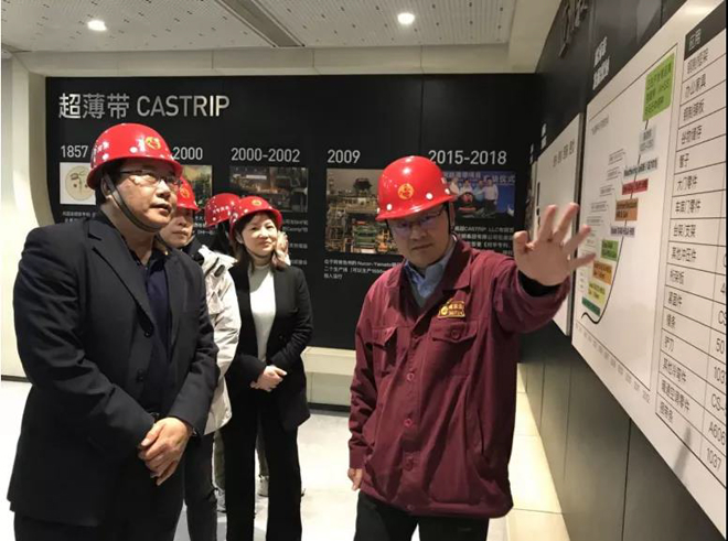 《鋼鐵脊梁》攝製項目組一行還參觀了沙鋼超薄帶生產線、焦化廠管控中心等項目。