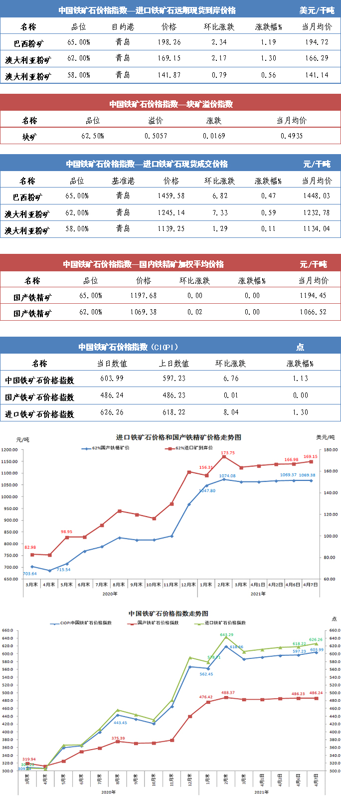 【行業指數】4月7日中國鐵礦石價格指數