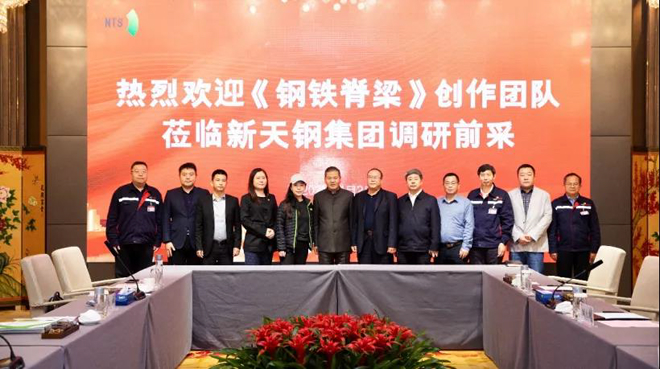 中國鋼鐵工業協會副會長,德龍集團、新天鋼集團董事長丁立國;《鋼鐵脊梁》紀錄片總導演劉娜;中國鋼鐵工業協會副秘書長,中國冶金報社黨委書記、社長陳玉千;新天鋼集團黨委書記景悅,執行總裁闞永海,黨委副書記、紀委書記、副總裁趙斌,黨委副書記楊勇,人力資源總監劉佳,黨委委員、組織統戰部部長李維建;中國冶金報社黨委委員、副社長熊餘平,社長助理、經濟發展中心主任陳曉莉,副總編輯、記者外聯中心主任呂兵,經濟發展中心副主任、鋼鐵部主任劉加軍等進行了座談交流。
