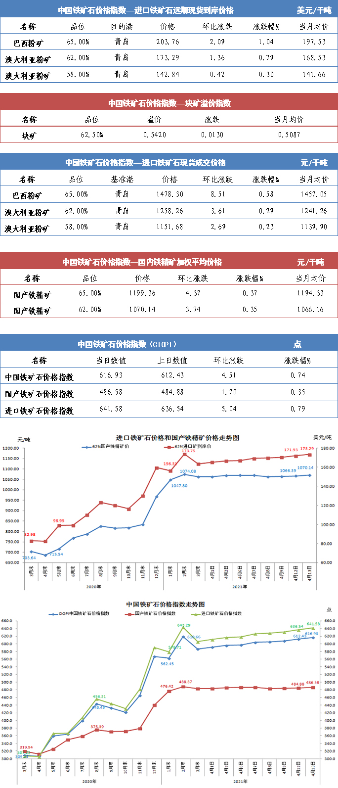 【行業指數】4月13日中國鐵礦石價格指數