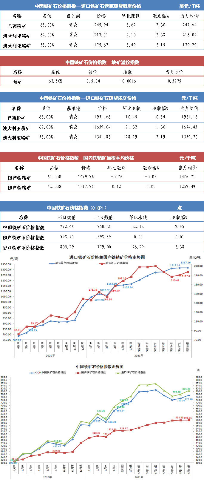 【行業指數】5月18日中國鐵礦石價格指數